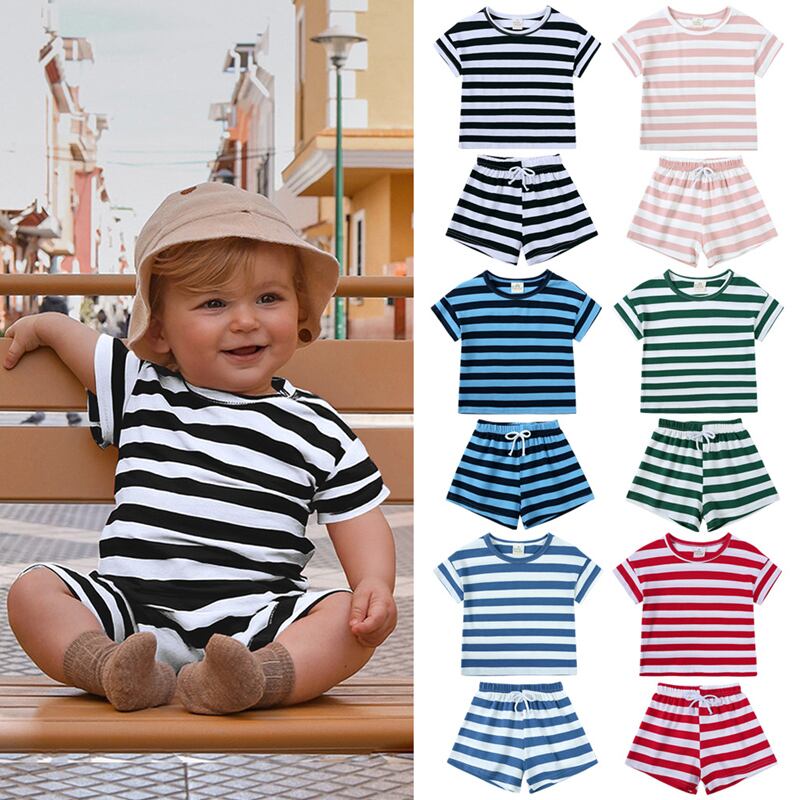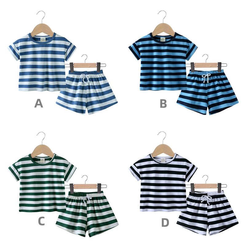【海外からの取り寄せ】2025夏新作 子供服 ストライプ柄 セットアップ 半袖Tシャツ ショートパンツ 男女兼用 可愛い 6色 #[ckd1094723_14100]【送料込み】【250704】