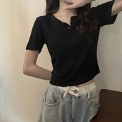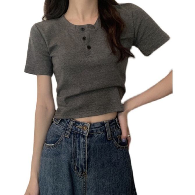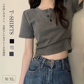 【海外からの取り寄せ】 2025新作 レディース ボタン ショート丈 半袖 トップス オフィス カジュアル クロップド #[tops628_8800]【送料込み】【250619】
