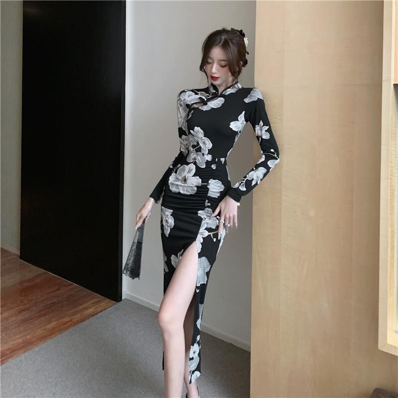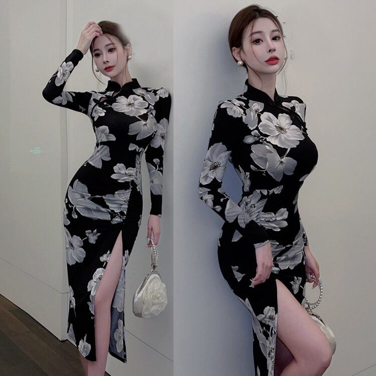 【即納】長袖 ストレッチ チャイナドレス パーティードレス【 #[3272_20000]】【送料込み】【250710】