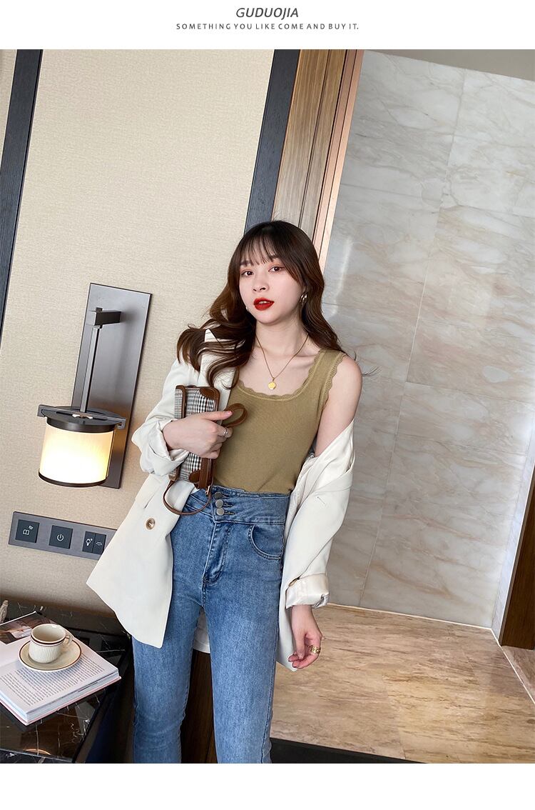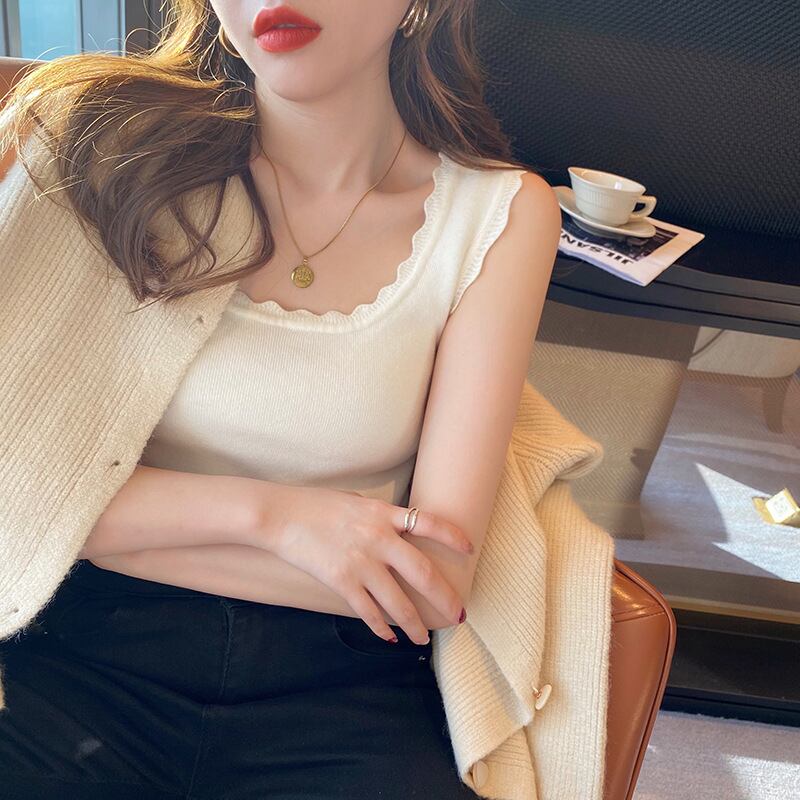 【海外からの取り寄せ】2023新作 レディース ニット タンクトップ ノースリーブ インナー 伸縮性 大人 無地 通勤 スクエア 着回し #[tops249_9800]【送料込み】【250620】