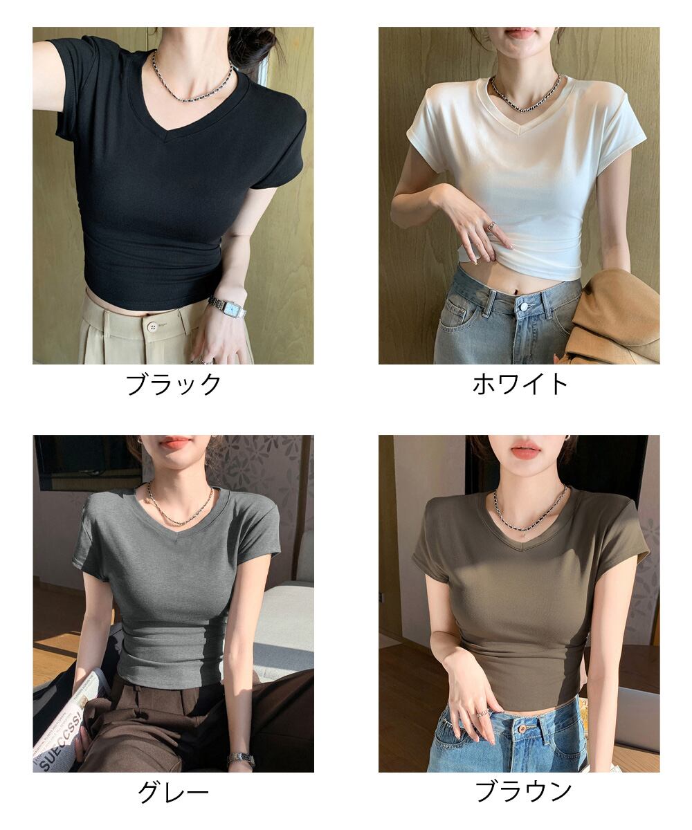 VネックTシャツ春夏 半袖カットソーレディース 着やせtシャツ大人可愛い カジュアルトップス タイトtシャツ細見えお洒落