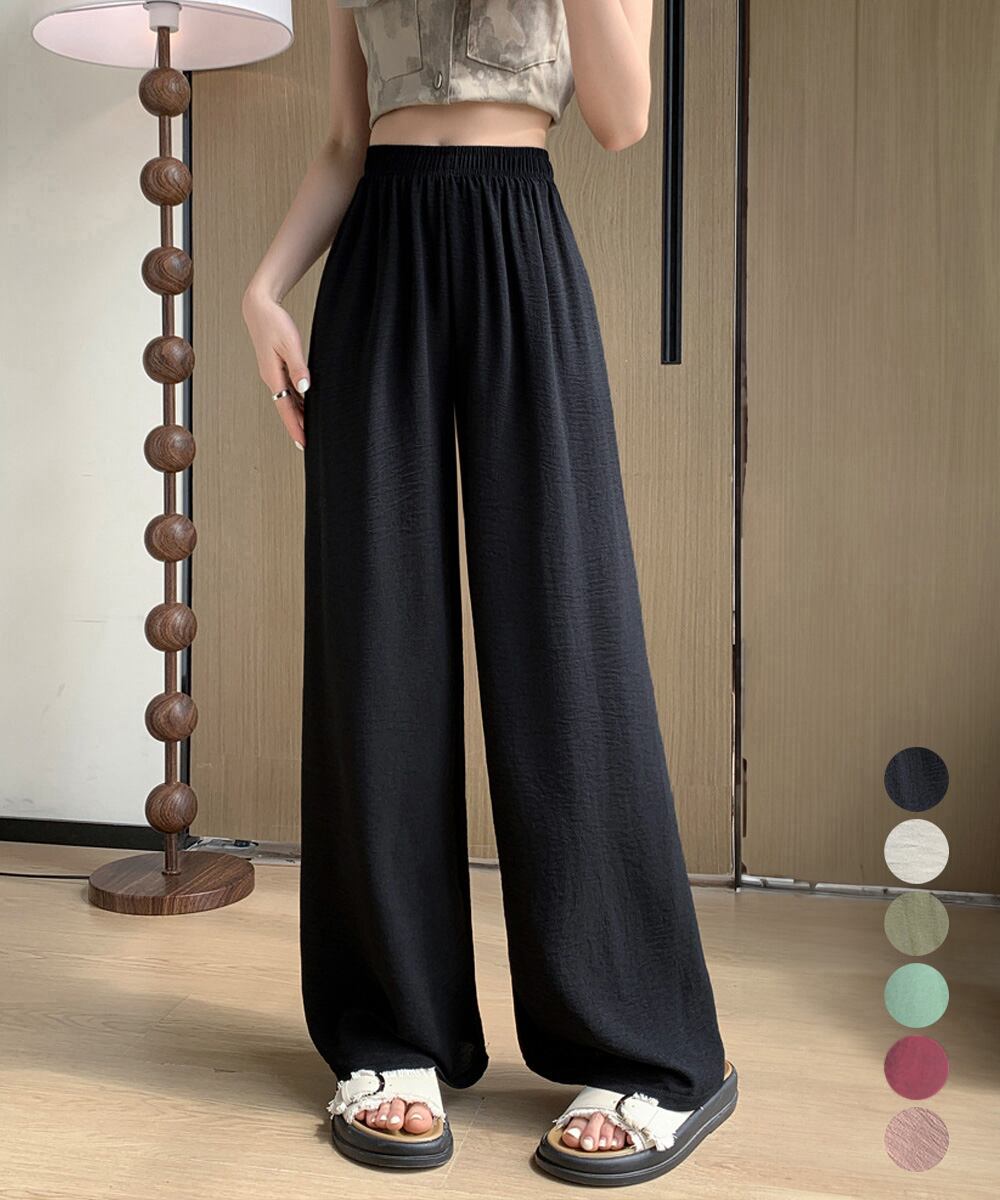 涼しいパンツ美脚脚長 薄手リネンパンツ春夏服 ウエストゴム楽ちんパンツ イージーパンツゆったり カジュアルパンツ長ズボン