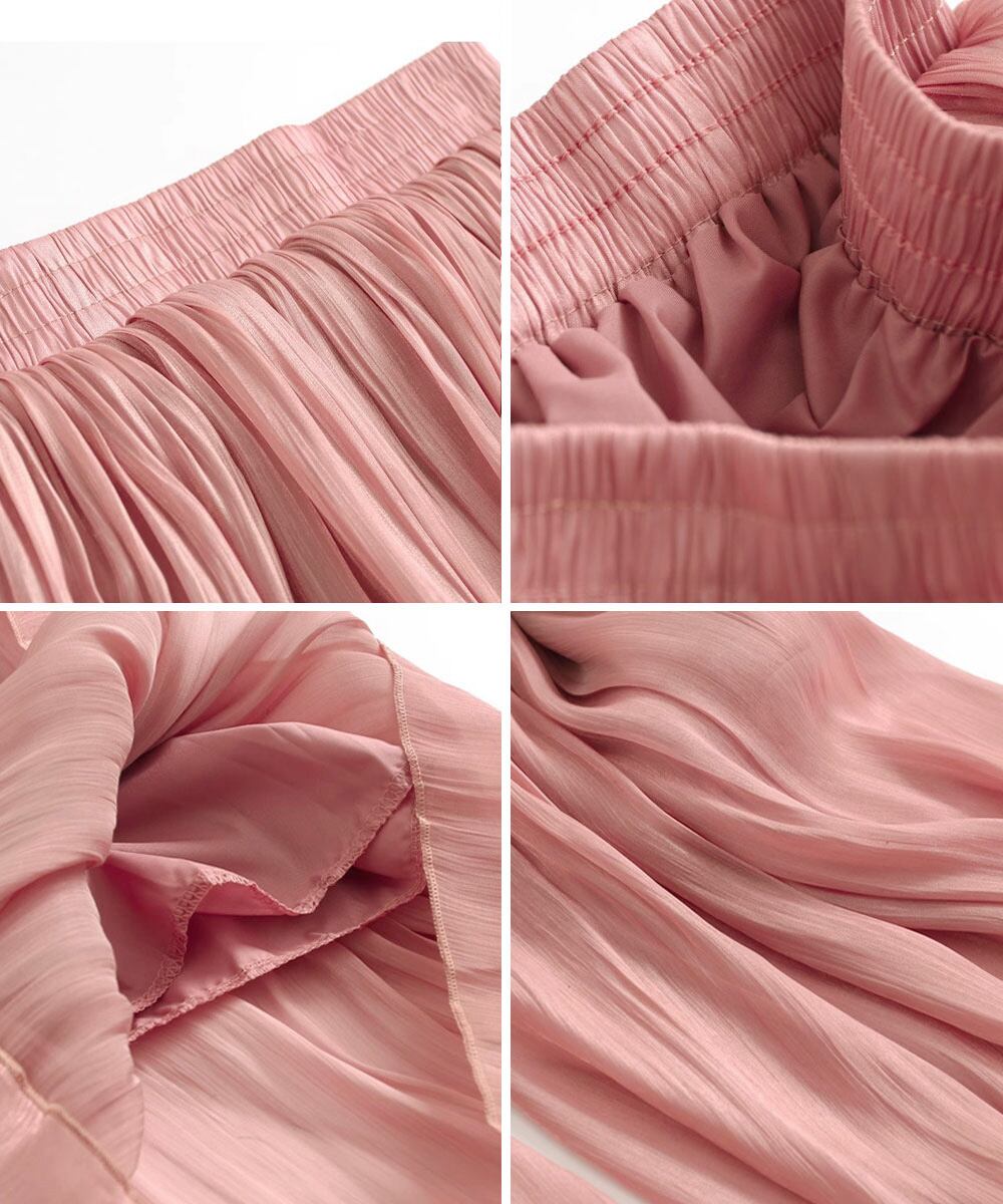 レディース 揺れるスカンツ ハイウエスト 体型カバーボトムス きれいめ 上品スカーチョ韓国風 光沢感シフォンパンツ 春夏