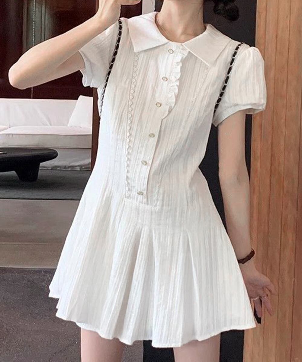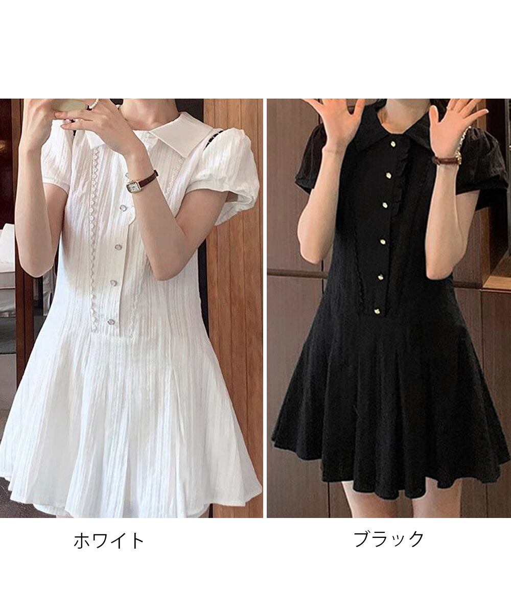 韓国ファッション夏 可愛いシャツワンピ デートワンピース白