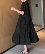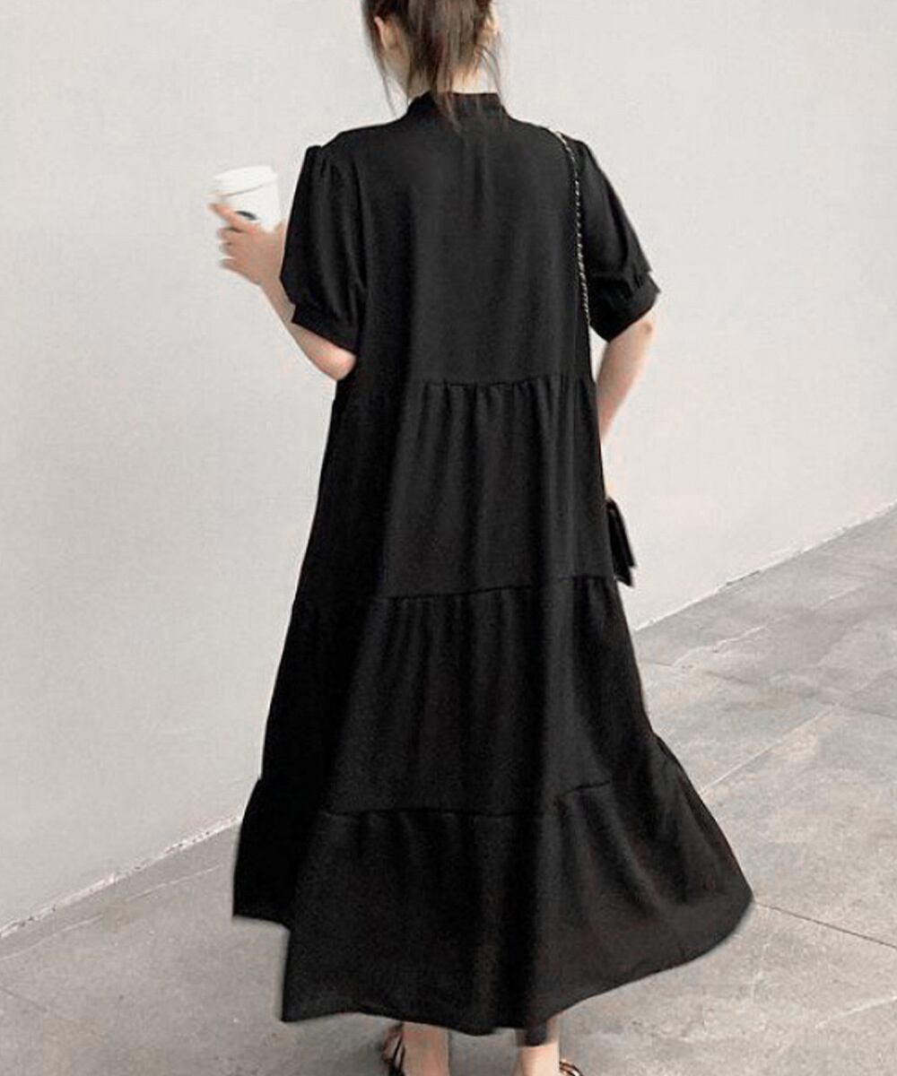 体型カバーロングワンピース きれいめ ゆったりワンピース 半袖 着やせワンピ おしゃれ オフィスカジュアル 韓国風 旅行