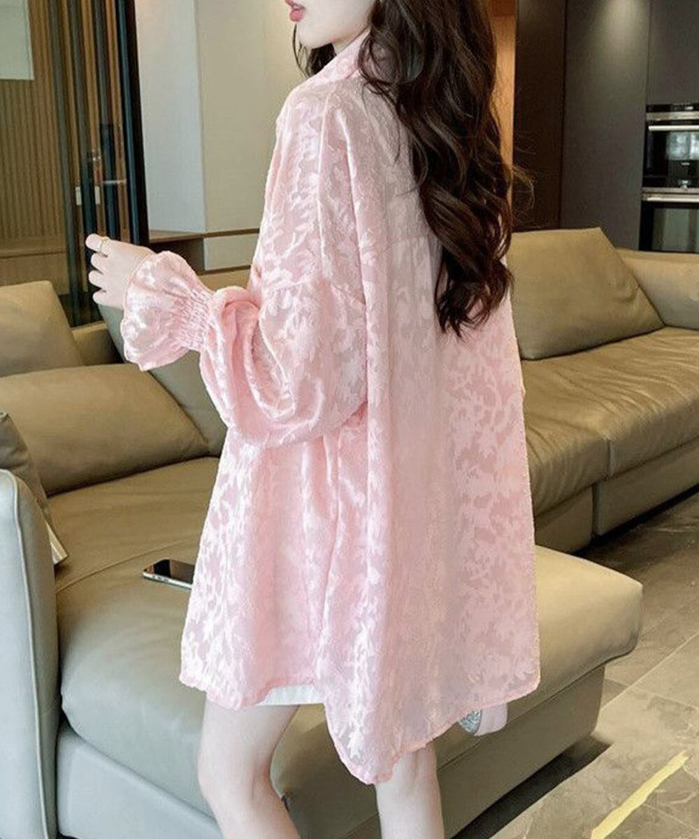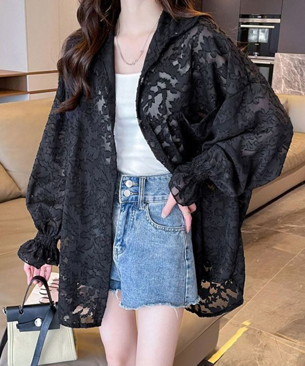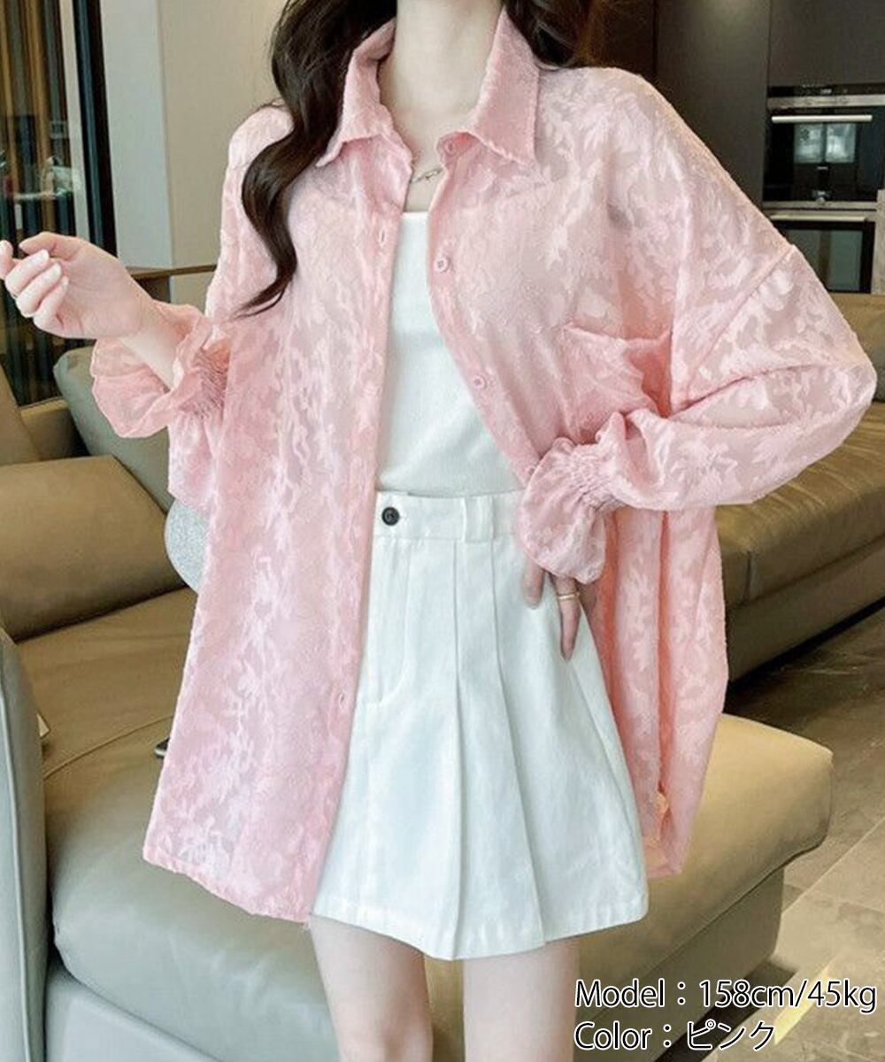シースルートップス UV対策 シアーシャツ BIGシルエットシアーブラウス 大人可愛い羽織り 体型カバートップス透け感