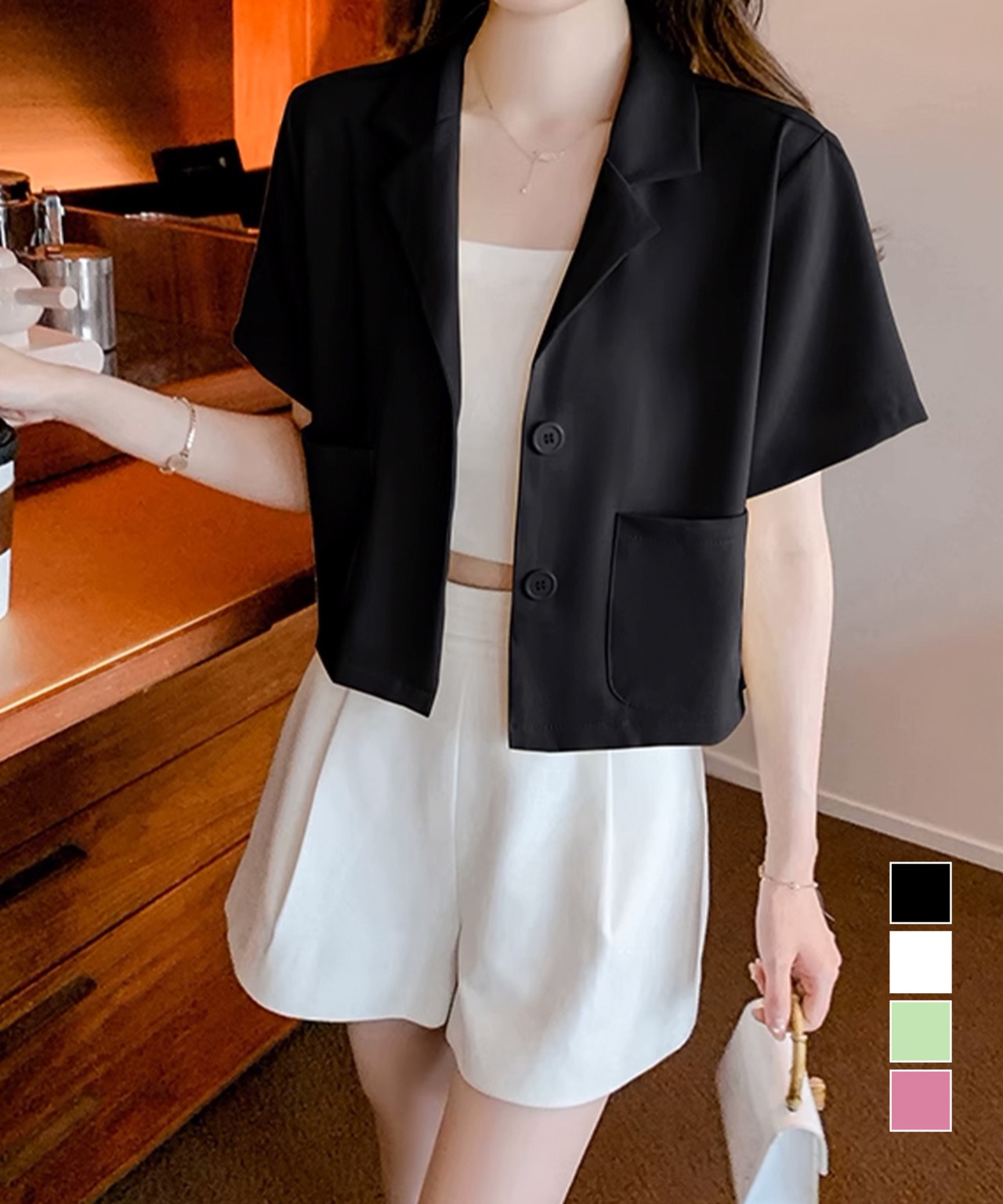 レディース オフィスカジュアル 春夏アウター 着回し羽織り おしゃれ半袖ジャケット 涼しいライトアウター コンパクト夏服