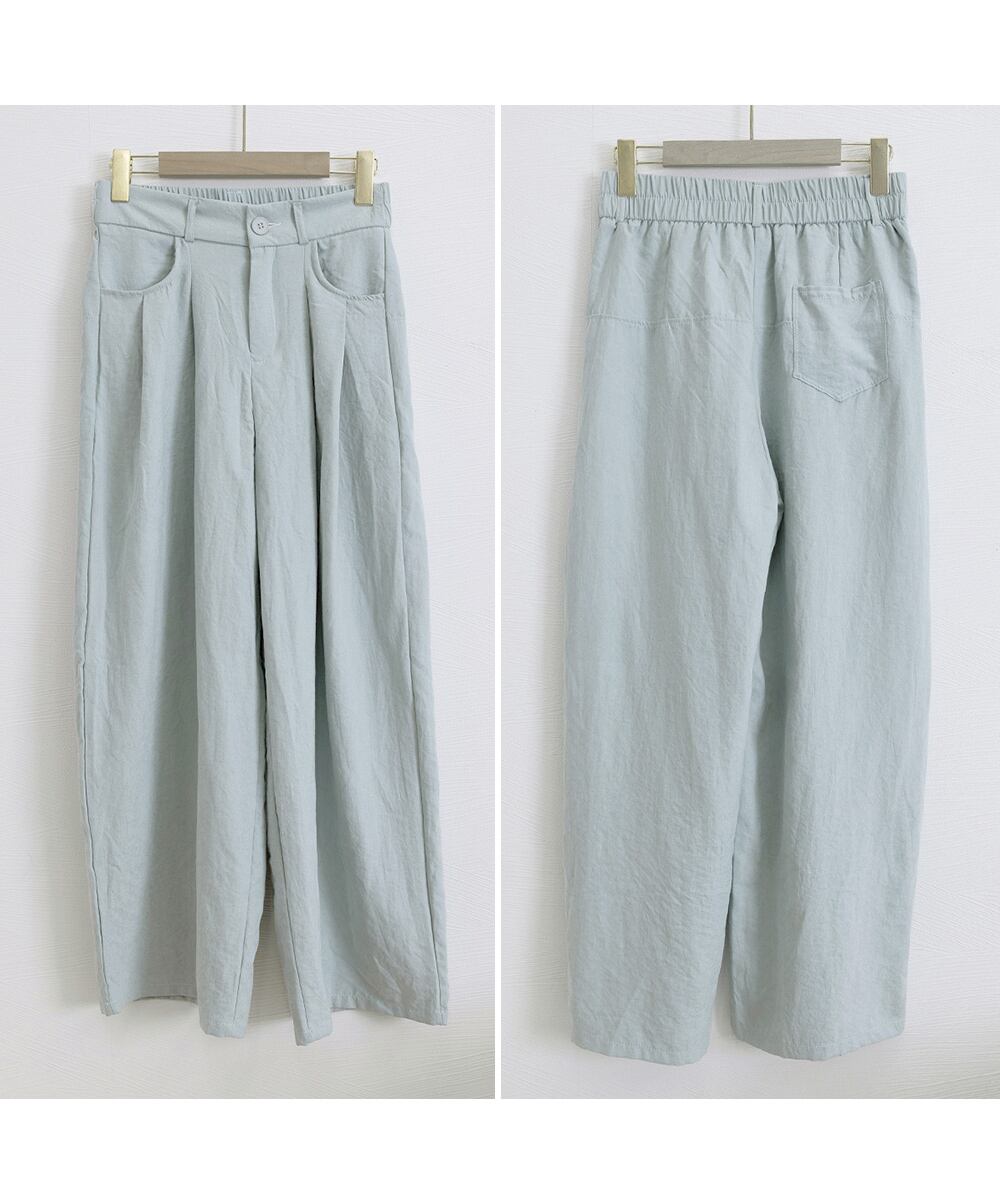 レディース ウエストタック リラックスパンツ 体型カバー 大人カジュアル ボトムス ゆったり バックゴムロングパンツ無地