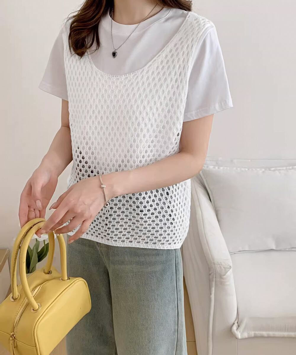 【日本倉庫からの発送】 透かし編みニットベスト 重ね着ニットジレ #[24TPS-044_13500]【送料込み】【250722】