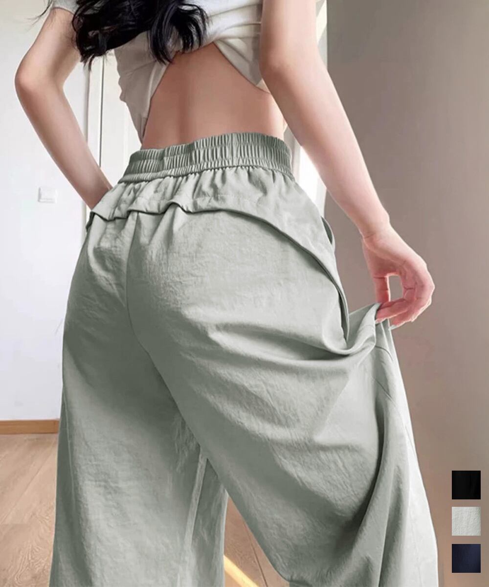 ハイウエスト ゆったり ワークパンツ ドローストリング イージーパンツ ウエストゴム 薄手パラシュートパンツ春夏 着やせ