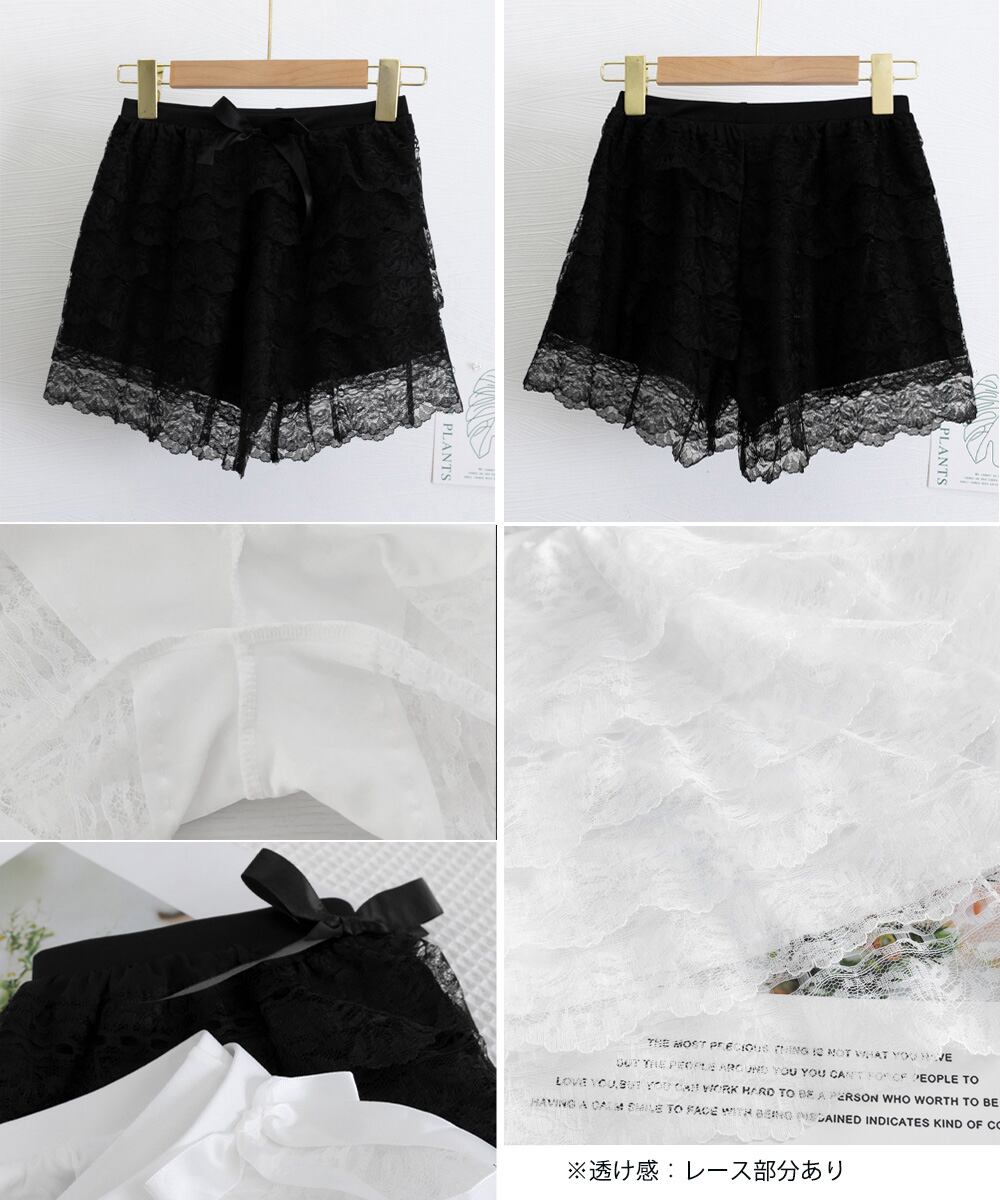 透け防止フリルインナーパンツ 総レース 楽ちん部屋着 チラ見せ防止タップパンツ 涼しい寝間着 ウエストゴムショートパンツ