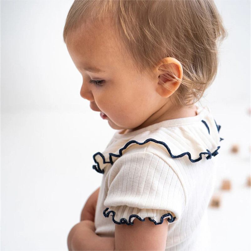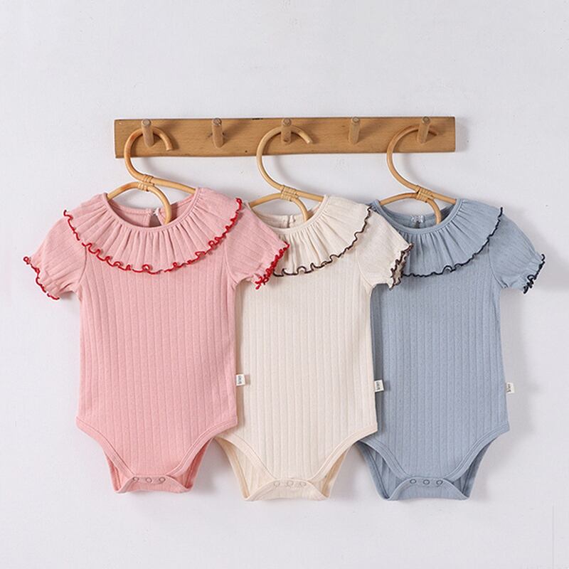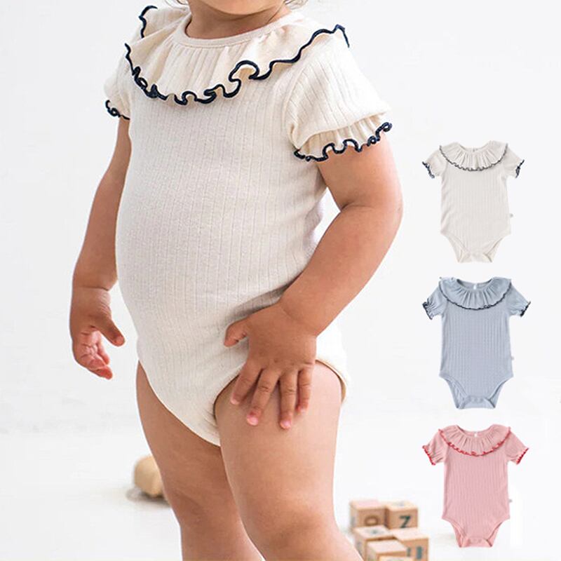 【海外からの取り寄せ】2025夏新作 ベビー服 女の子 ラッフルカラー 半袖 新生児 リブ ロンパース 柔らか 子供服 #[ckd1094735_10700]【送料込み】【250725】