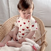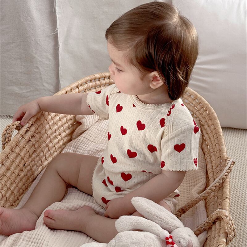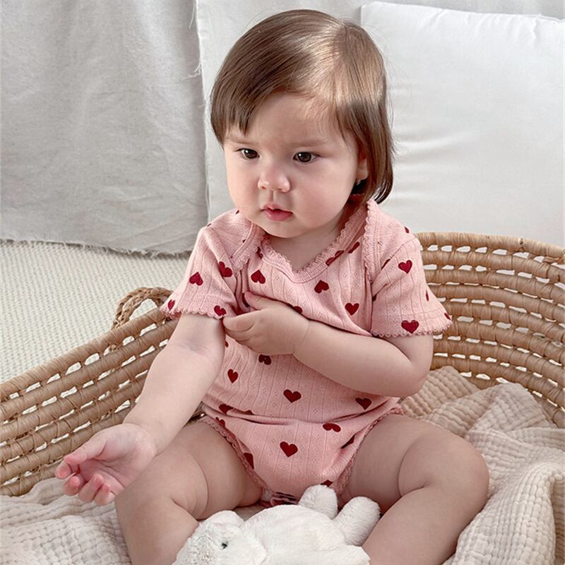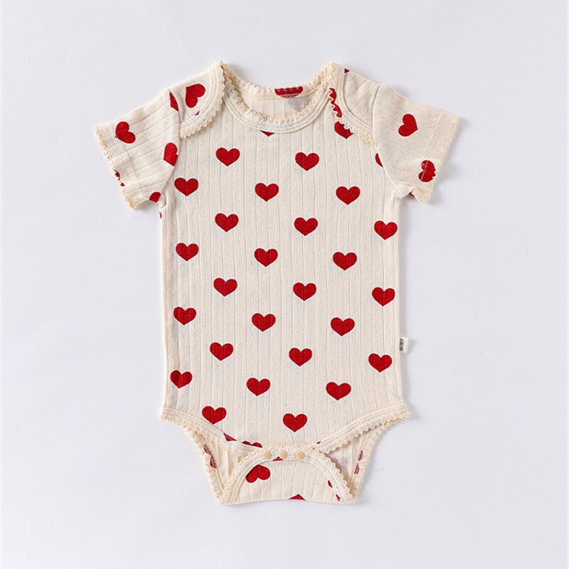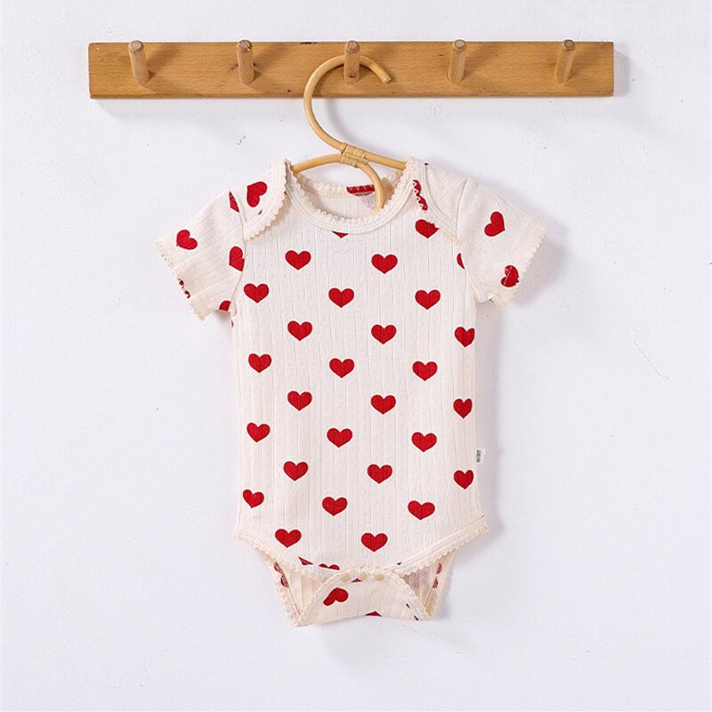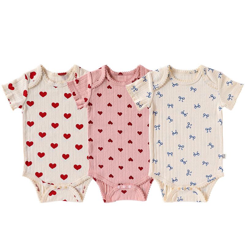 【海外からの取り寄せ】2025夏新作 ベビー服 女の子 半袖 新生児 リブ ロンパース 柔らか ハート柄 リボン柄 子供服 #[ckd1094731_12700]【送料込み】【250823】