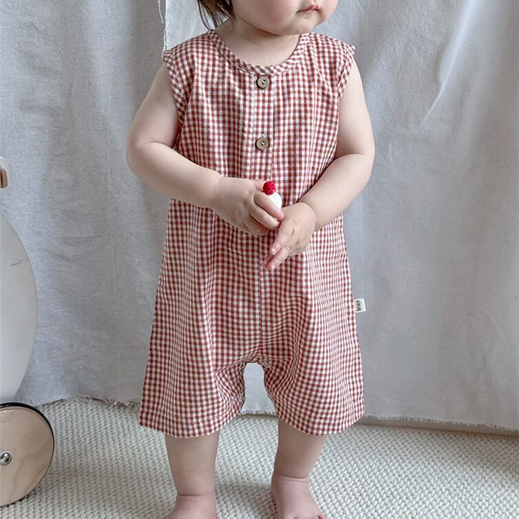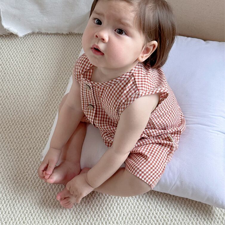 【海外からの取り寄せ】2025夏新作 ノースリーブ オールインワン チェック柄 ベビー服 可愛い おしゃれ 子供服 柔らか #[ckd1094726_13600]【送料込み】【250628】