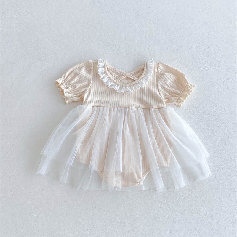 【海外からの取り寄せ】2025夏新作 ベビー服 半袖 パフスリーブ リブ ロンパース 女の子 可愛い チュール 2色 子供服 #[ckd1094717_17500]【送料込み】【250628】