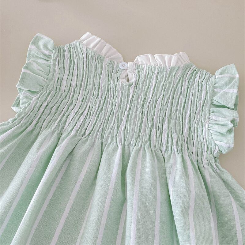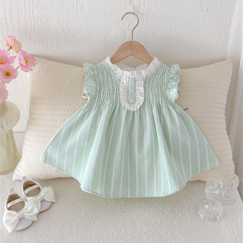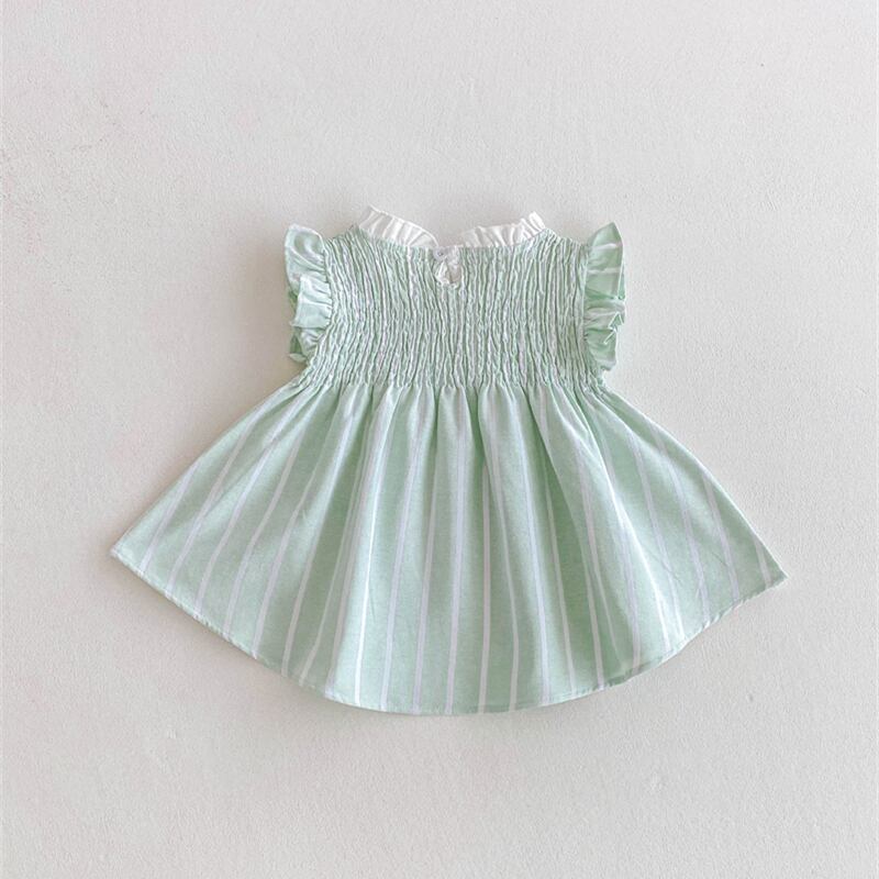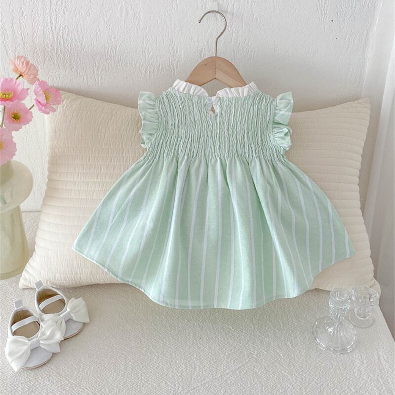 【海外からの取り寄せ】2025夏新作 女の子 立ち襟 フラッタースリーブ ワンピース 子供服 可愛い おしゃれ ストライプ #[ckd1094716_16200]【送料込み】【250727】