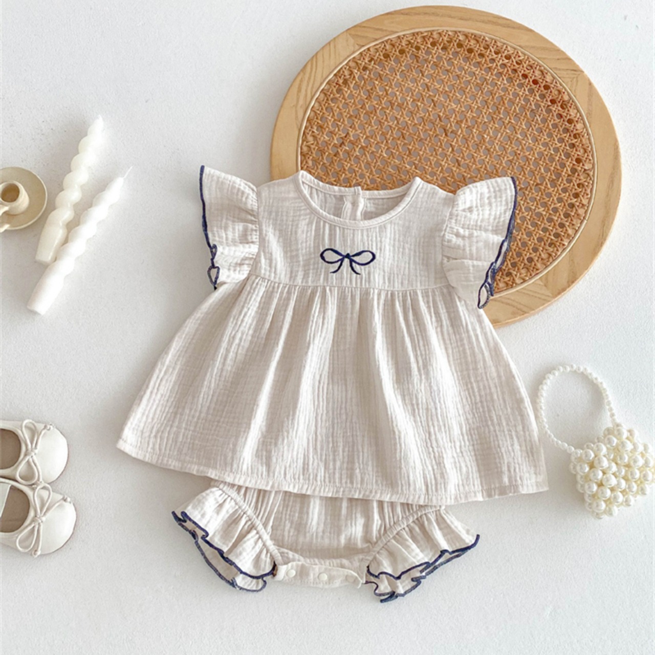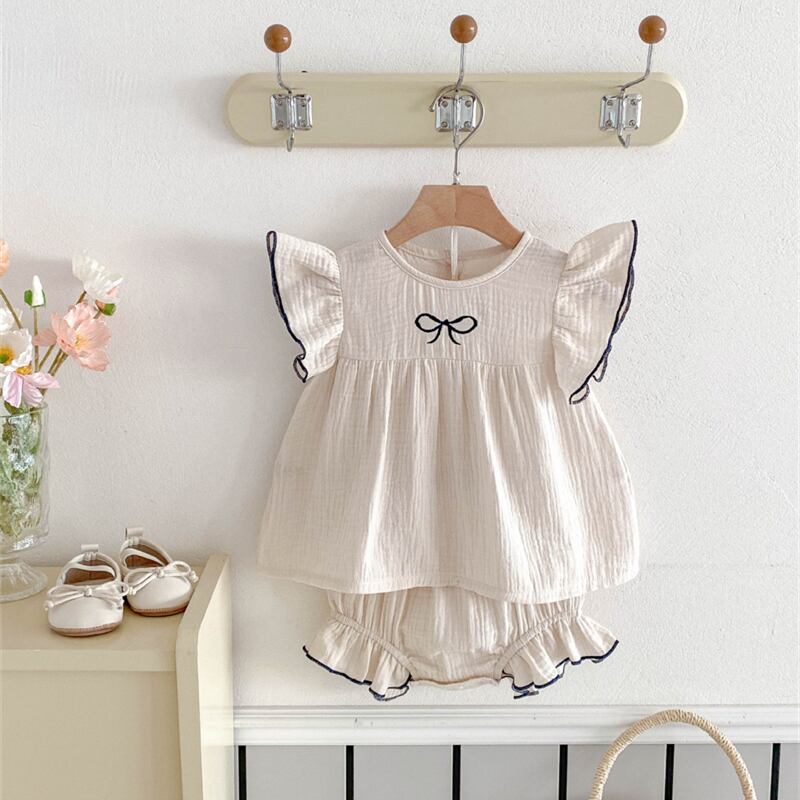 【海外からの取り寄せ】2025夏新作 ベビー服 女の子 刺繍リボン セットアップ ブラウス ブルマー おしゃれ 子供服 可愛い #[ckd1094715_17000]【送料込み】【250628】