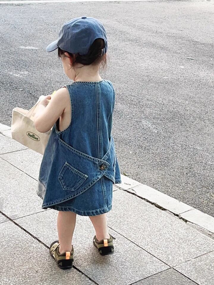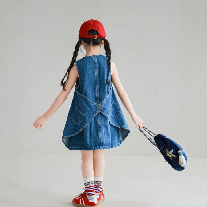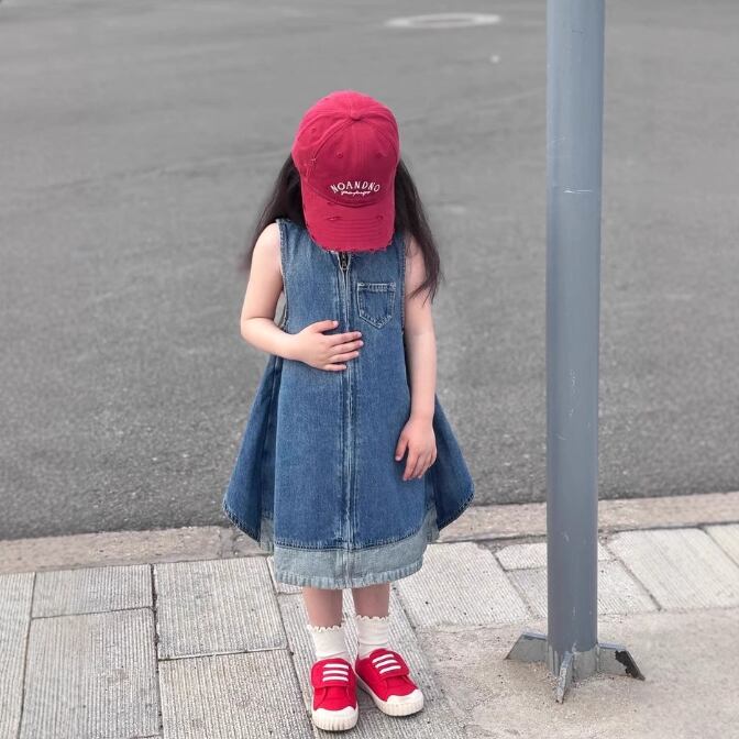 【海外からの取り寄せ】2025新作 韓国子供服 子供 キッズ ワンピーストップス デニム かわいい ノースリーブ 女児 #[kids867_22800]【送料込み】【250706】