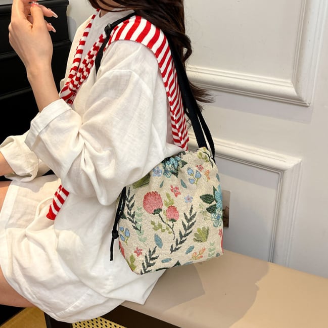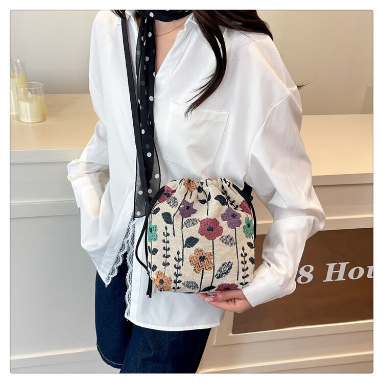 【海外からの取り寄せ】 2025新作 レディース ショルダーバッグ 肩掛け ワンショルダー 花柄巾着 ミニ バケット #[bag1766_6900]【送料込み】【250704】