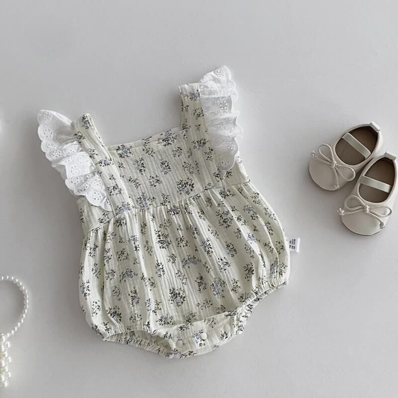 【海外からの取り寄せ】2025夏新作 ベビー服 女の子 スクエアネック レース 花柄 ロンパース 可愛い 子供服 おしゃれ #[ckd1094745_16100]【送料込み】【250727】
