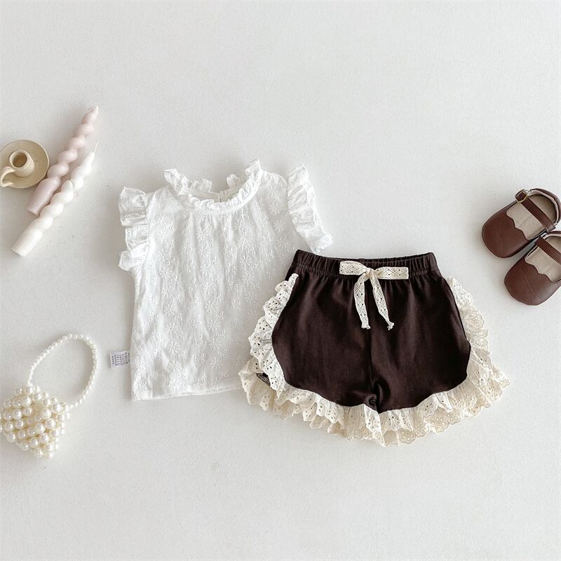【海外からの取り寄せ】2025夏新作 女の子 レースドッキング セットアップ トップス ショートパンツ 子供服 可愛い 柔らか #[ckd1094743_17600]【送料込み】【250727】