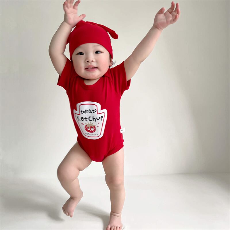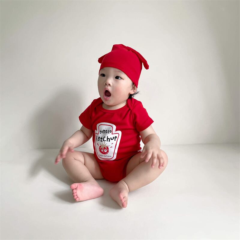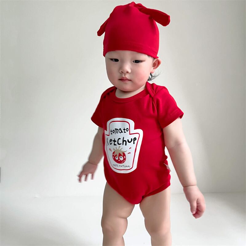 【海外からの取り寄せ】ins 夏新作 ベビー服 帽子付き ロンパース トマト 半袖 カバーオール 可愛い 柔らか 子供服 #[ckd1094740_14100]【送料込み】【250628】