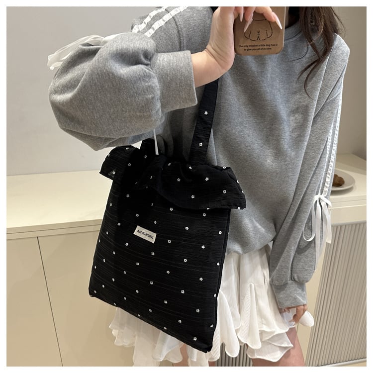 フリルと小花柄のプリントが愛らしいトートバッグ