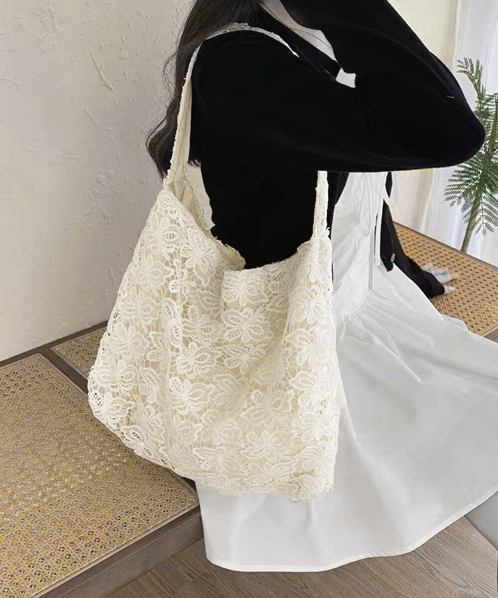 【日本倉庫からの発送】 トートバッグ 大容量 レースバッグ 花柄 #[77JXF-001_17700]【送料込み】【250923】