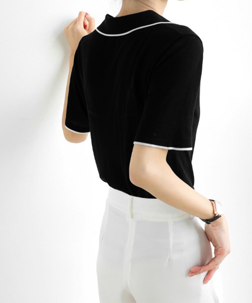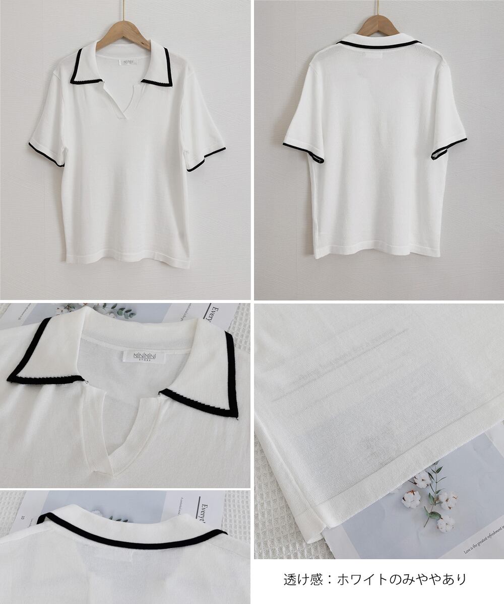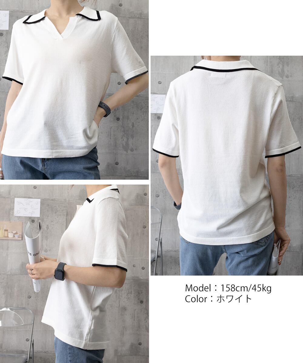 ポロデザインが上品な印象を与える半袖ニットトップス