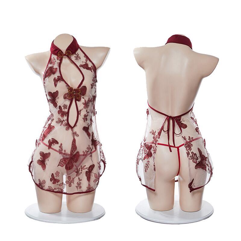 【即納】蝶刺繍 ベビードール&Tバック ランジェリー【 #[8339_12000]】【送料込み】【250921】