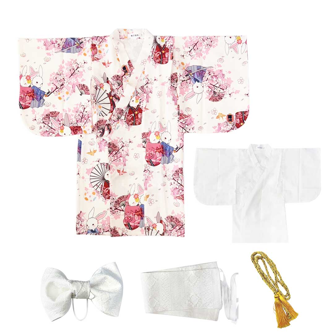 子供用 着物 ピンク うさぎ 浴衣+襦袢+帯 3点セット 高級感 品質重視 洗える 夏着物 浴衣 浴衣セット #[20240618-5664_158900]【送料込み】【250706】