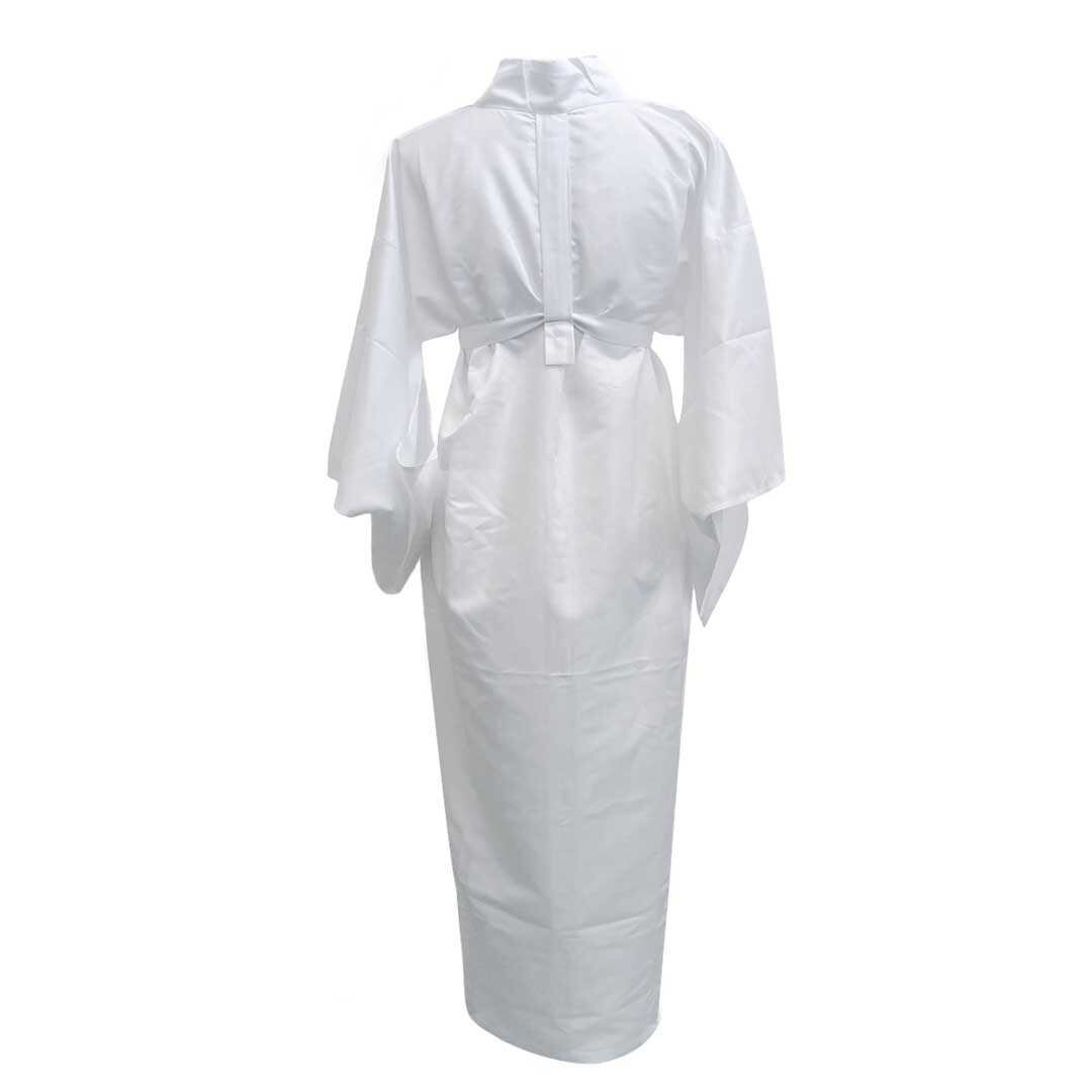女性用の和装インナーとして便利な盛夏用の長襦袢です。白の無地で、柔らかい生地が涼しげな夏向きのデザインです。生地には、お手入れのしやすいポリエステルを使用しています。