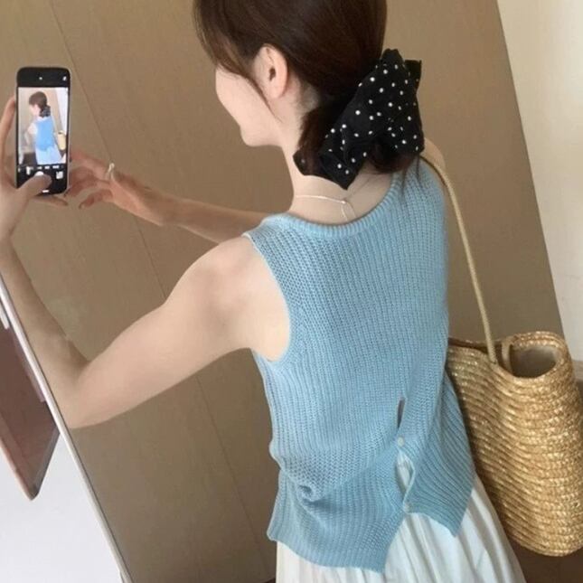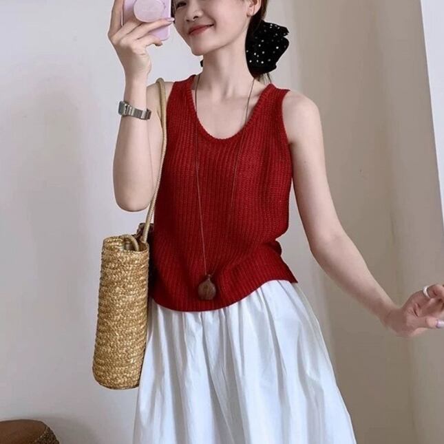【海外からの取り寄せ】2025新作 レディース ニットトップス ベスト 無地 薄手 通気性 ノースリーブ シアートップス 着回し 痩せ #[tops644_7800]【送料込み】【250712】
