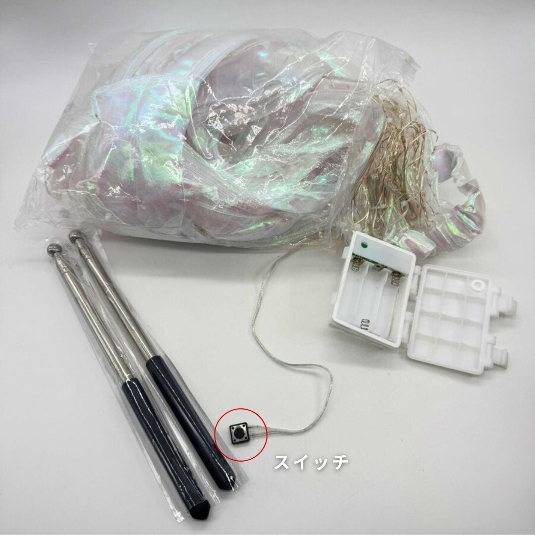 この光るウィングは、伸縮可能なロッドを両側に取り付けることで、360度の完全な展開が可能。大きく広げることで、まるで天使の羽根のような美しいシルエットを演出できます。