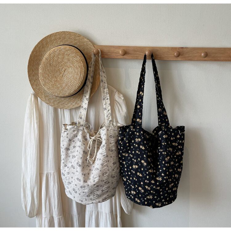 【夏の定番に】新感覚!小花柄のナチュラルバケットトートバッグ