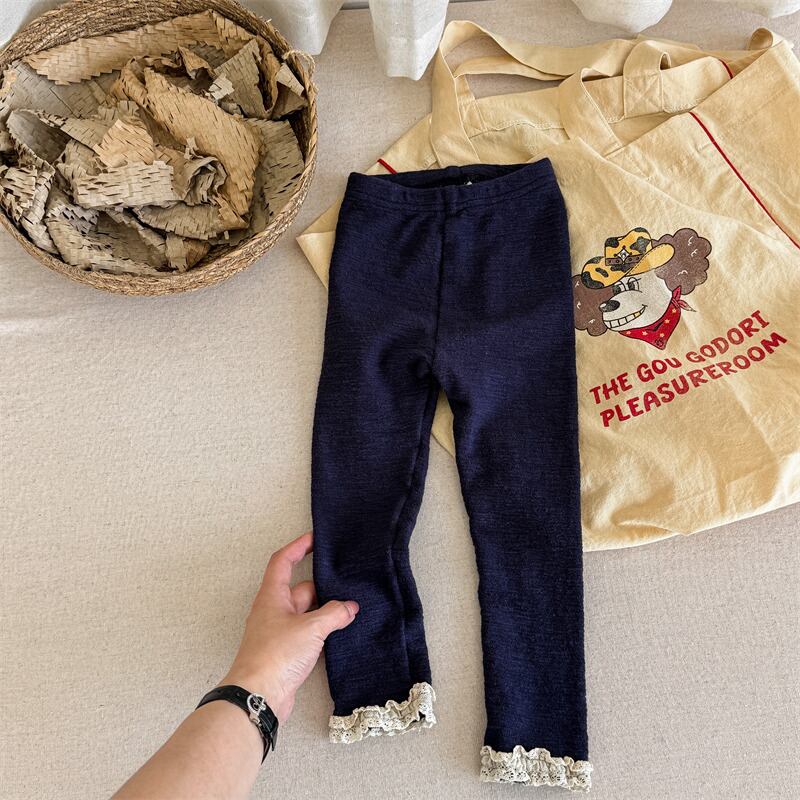 【海外からの取り寄せ】2025秋新作 子供服 レギンス 女の子 レースドッキング ロングパンツ 無地 柔らか ボトムス 3色 #[ckd1094975_13500]【送料込み】【250913】