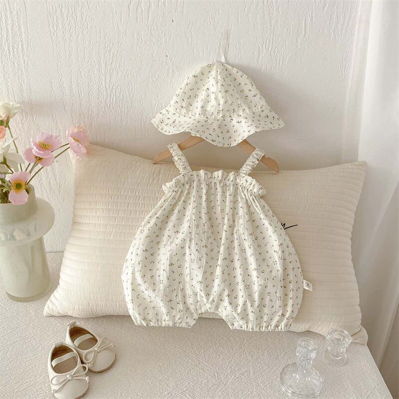 【海外からの取り寄せ】ins 夏新作 ベビー服 女の子 帽子付き サロペット 花柄 ロンパース 可愛い 新生児 子供服 女児 #[ckd1094973_15000]【送料込み】【250709】