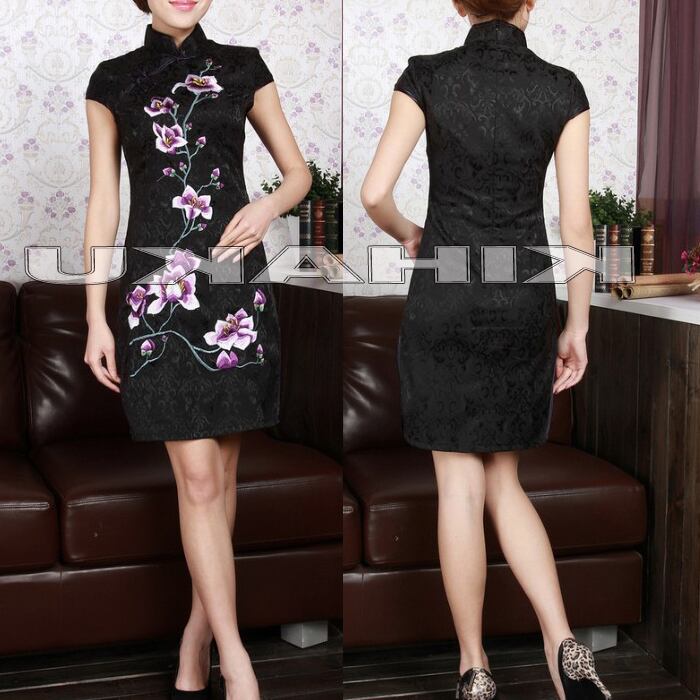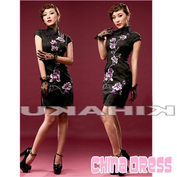【即日出荷】花柄 ショート チャイナドレス 【 #[3113_26000]/黒】【送料込み】【250915】