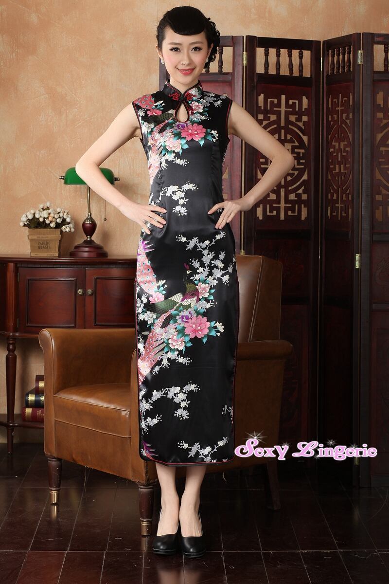 【即日出荷】孔雀柄 ロング丈 チャイナドレス 袖なし【 #[3159_16000]/4色】【送料込み】【250920】