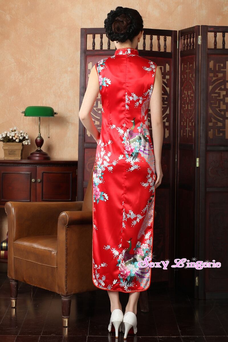 孔雀柄の魅力的なチャイナドレス!薄手で涼しいサテンは暑い夏にばっちり♪ 両サイドのスリットがとってもエロティック!ボディラインを美しく見せる、 大変綺麗なチャイナドレスです♪結婚式やパーティーにお勧め