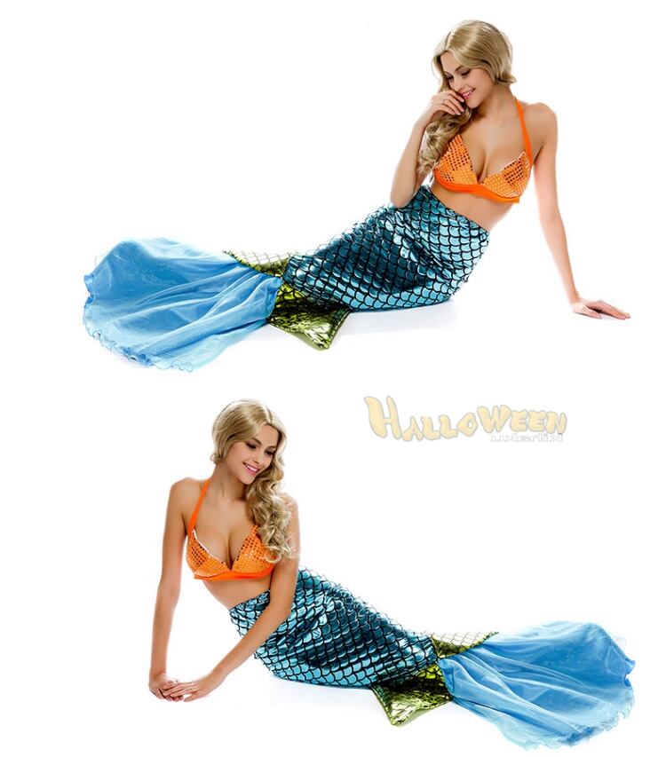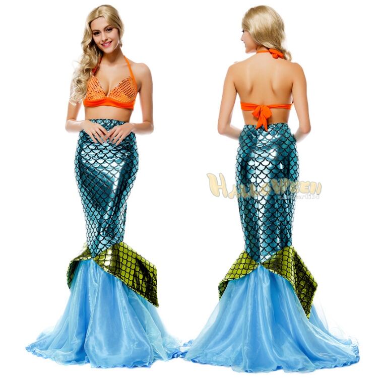 【即日出荷】オレンジ 人魚姫 ロング丈ドレス コスプレ ハロウィン衣装【 #[4857_29400]/2】【送料込み】【250923】