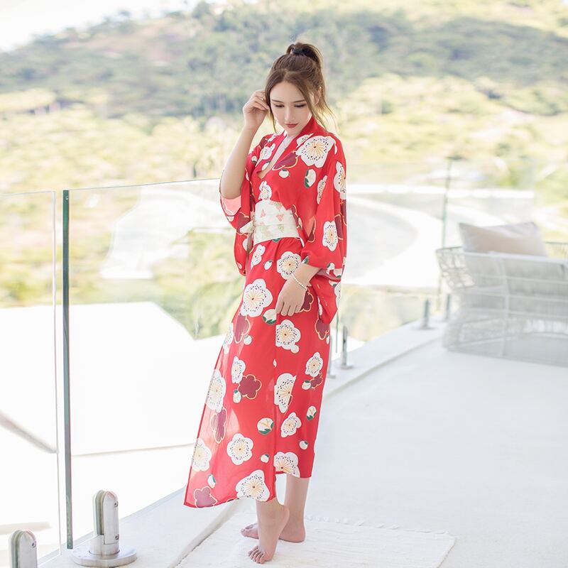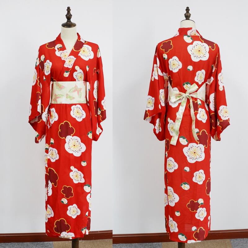 【即日出荷】赤 ロング丈 セクシー着物ドレス 浴衣 コスプレ衣装 【 #[3027_25000]】【送料込み】【250904】