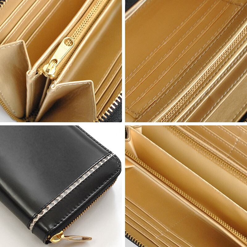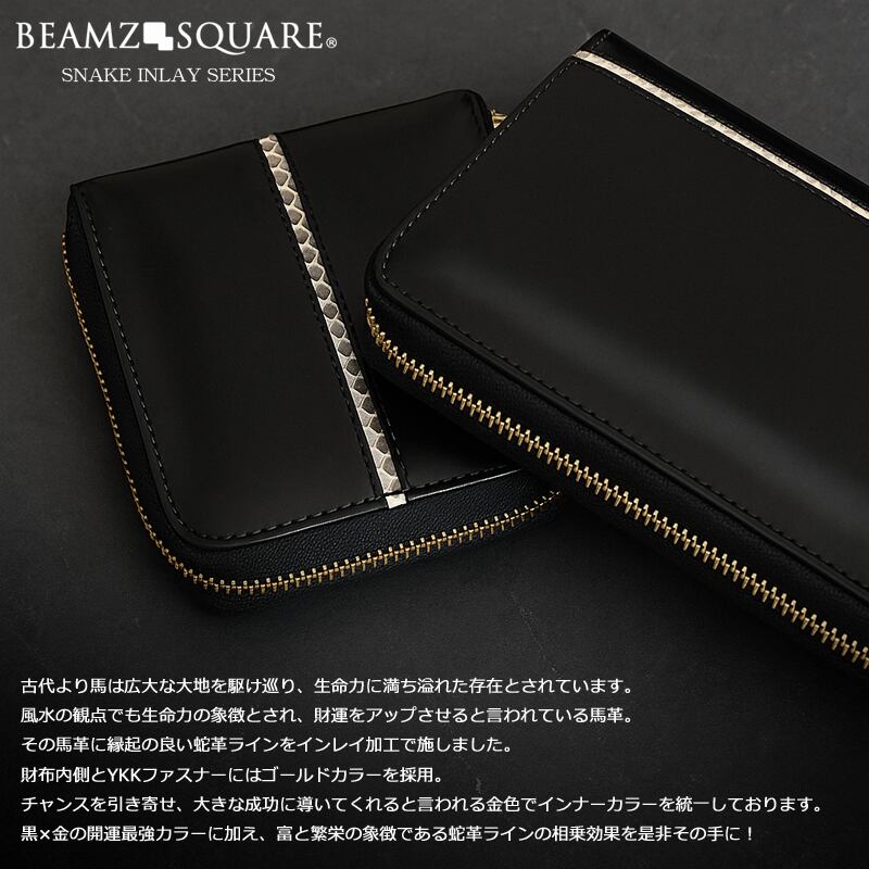 BEAMZSQUARE 蛇革クロスライン×馬革ラウンドファスナー長財布 #[BZSQ-318_60000] 黒金開運金運財布【送料込み】【251103】