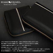BEAMZSQUARE 蛇革クロスライン×馬革ラウンドファスナー長財布 #[BZSQ-318_60000] 黒金開運金運財布【送料込み】【250710】