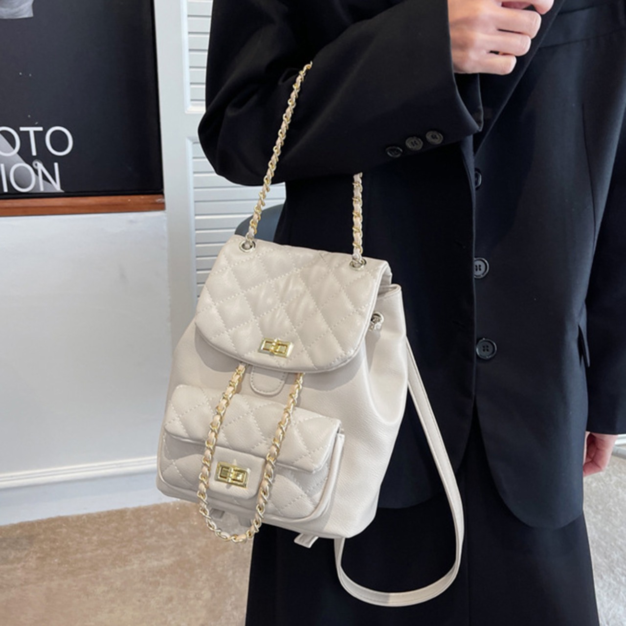 キルティング素材がスタイリングのポイントになる2wayミニリュック
