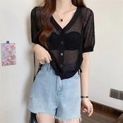 【海外からの取り寄せ】 2025新作 レディース Vネックカーディガン 長袖 日焼け防止 寒さ対策 透け感 メッシュ #[cardigan207_11800]【送料込み】【250712】