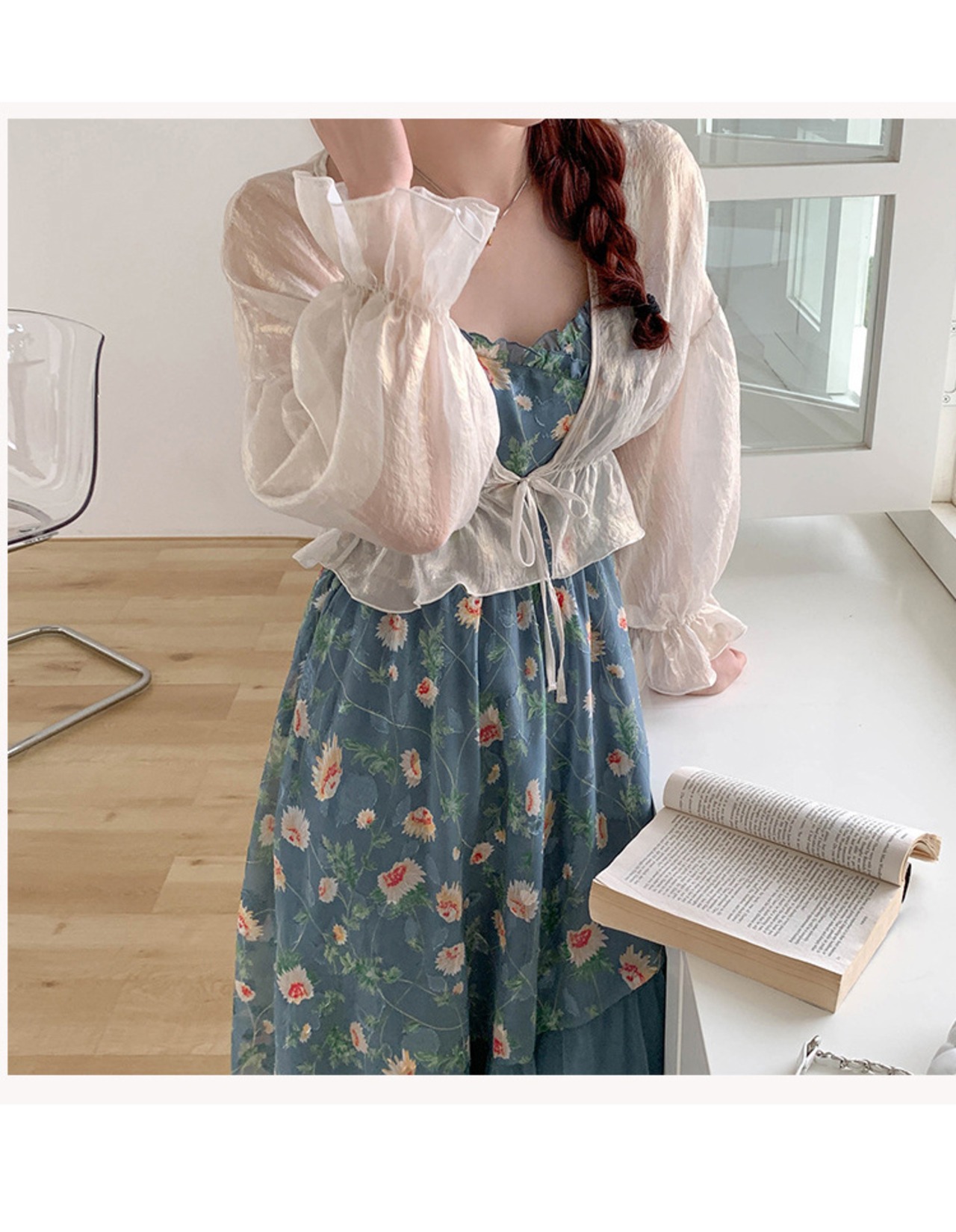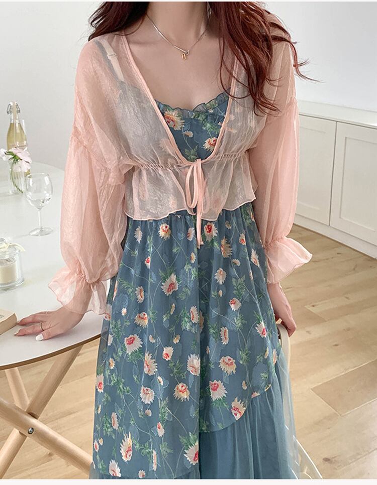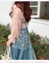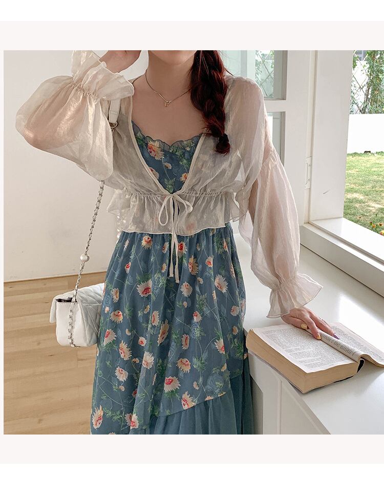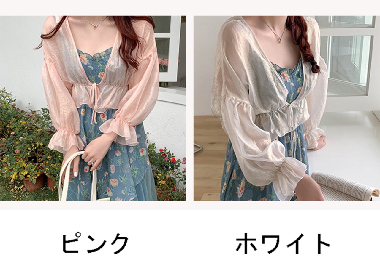シースルー素材、袖と丈にフリルが付き、キュートさアップ?羽織るだけで、大人ガーリーのスタイルに