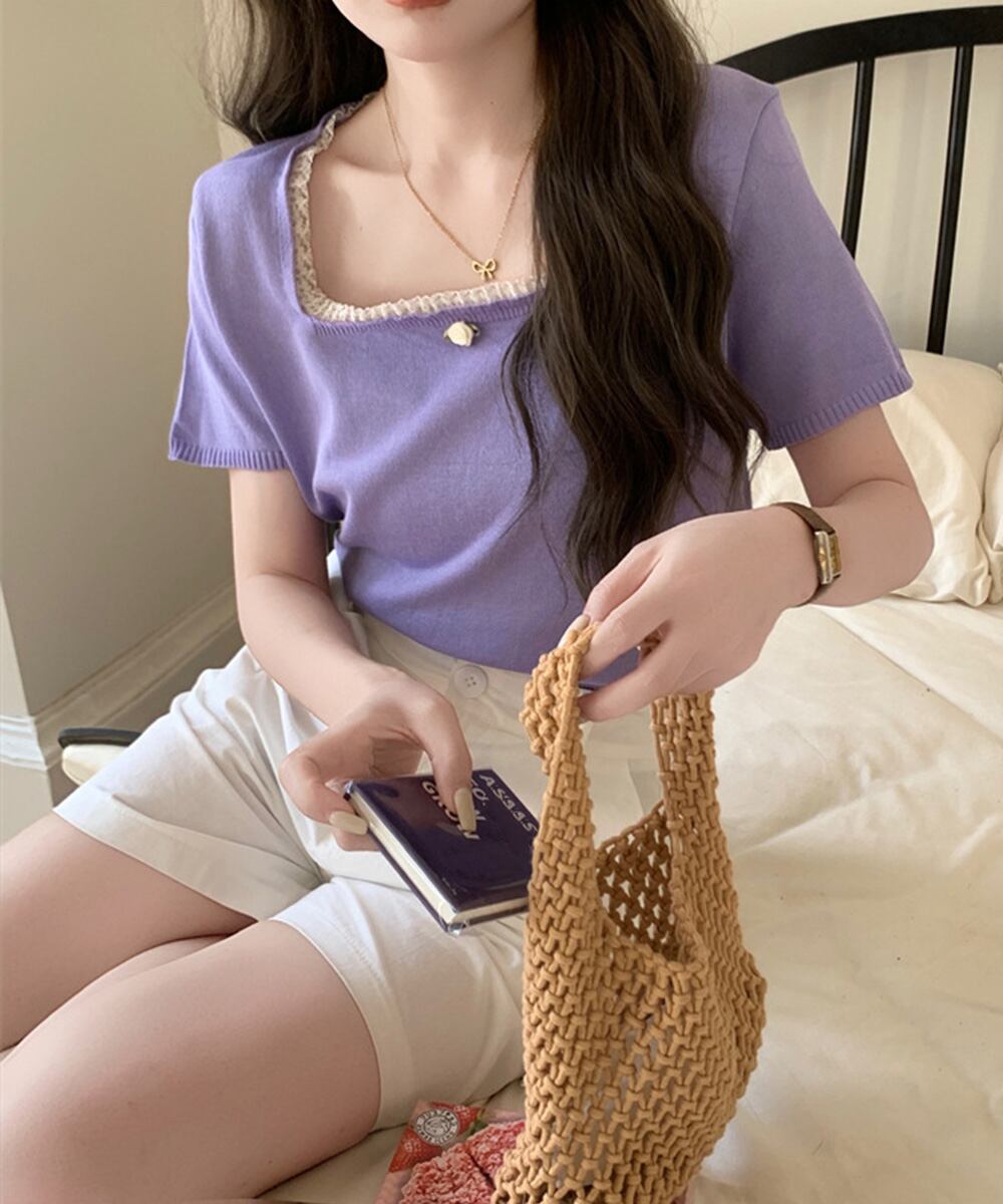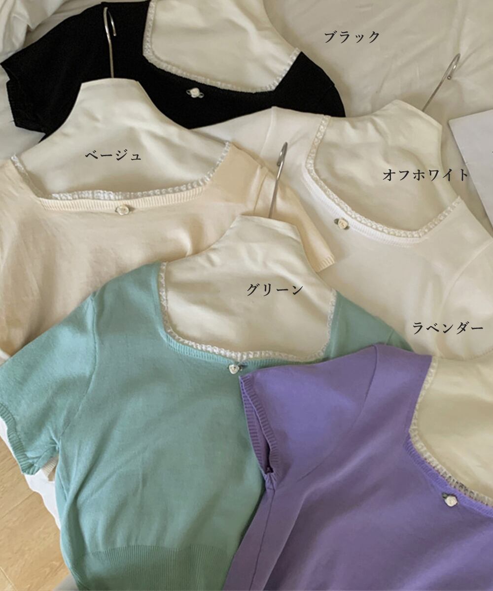 【日本倉庫からの発送】 スクエアネック サマーニット トップス #[617SY-006_20400]【送料込み】【250722】