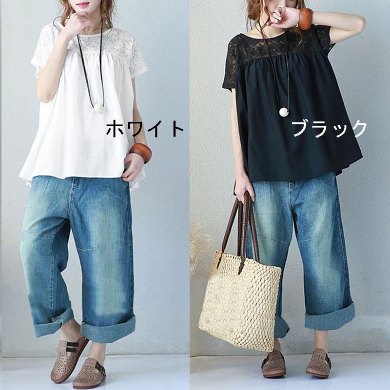 【海外からの取り寄せ】新作レース切り替え ブラウス フレンチスリーブ 花柄 刺繍 コットン混紡 #[shirt133_9800]【送料込み】【250712】