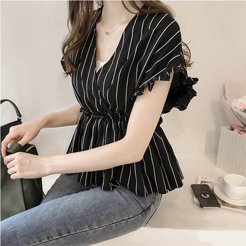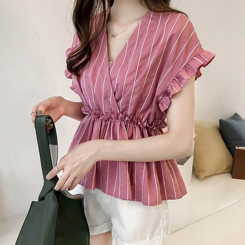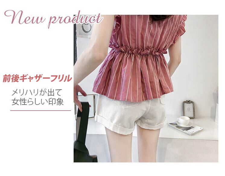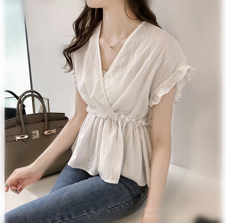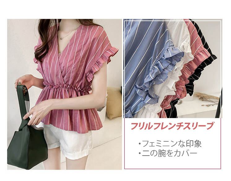 【海外からの取り寄せ】2021新作 レディース Vネック ギャザー フリル フレンチスリーブ ブラウス 半袖 大きいサイズ #[shirt269_10800]【送料込み】【250712】